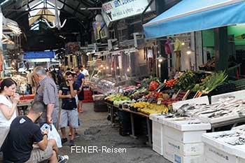 Mitten im Zentrum liegt das traditionelle Marktviertel. Tagsüber ein wuseliger, chaotischer, lauter und bunter Umschlagplatz für alle Art von Waren. Kleidung, Haushaltswaren und eine unglaubliche Fülle an Lebensmitteln. Nach Sparten sortiert, Fischhändler, an Fischhändler, die Fleischer, Gemüseanbieter, Gewürze und Backwaren. Hier gibt es alles und das in hervorragender Qualität!