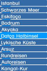 Wie ein Finger ragt markant, die knapp 100 km lange Datcahalbinsel westlich von Marmaris ins Meer und teilt es an dieser Stelle in den nördlichen Teil, die Ägäis und in den südlichen, das Mittelmeer.
